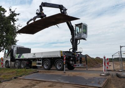 Unsere Stahlplatten ermöglichen stabile und saubere Untergründe auch bei anspruchsvollen Bodenverhältnissen. So entstehen schnelle und effiziente Lösungen für temporäre Wege und Abstellflächen.